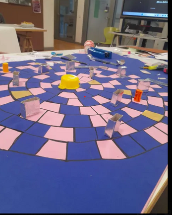 1. Each player picks a token and places it at the starting point, then they pick a paper blindly to move one step. If the player picks a pink tile, they'll move two steps, if they pick a blue tile they'll move one step.